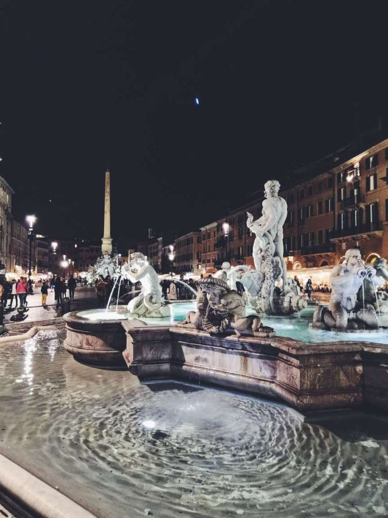 Fotografo con gli occhi questi istanti e lascio che piazza Navona mi sorprenda più del solito, vuoi per l’aria autunnale che risulta ancora calda, vuoi perché nonostante gli ampi spazi si respira un’atmosfera intima, vuoi per le luci soffuse che lasciano intravedere scene di vita quotidiana attorno la fontana del Bernini. Le bellezze però non si trovano solo in superficie: Roma ha sempre in serbo chicche archeologiche nascoste tra le moderne mura cittadine, come i resti dello Stadio Domiziano, antica arena dove si svolgevano competizioni agonistiche che ha dato forma a piazza Navona.