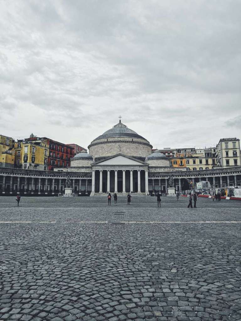 Proseguo dritta verso la maestosa Galleria Umberto I (la cui struttura prende ispirazione dalla ben più nota Galleria Vittorio Emanuele, il salotto di cristallo a Milano) e con una manciata di passi in più eccomi a piazza del Plebiscito. Scelgo di assaporarla con calma mentre mi gusto una calda sfogliatella a lato della strada e colgo l’occasione per tentare una sfida che accetta buona parte delle persone che passano di qui: attraversare la piazza a occhi chiusi cercando di raggiungere l’estremità opposta. Cosa da principianti? Provare per credere. Io come il novantotto percento degli sfidanti non ci son riuscita.