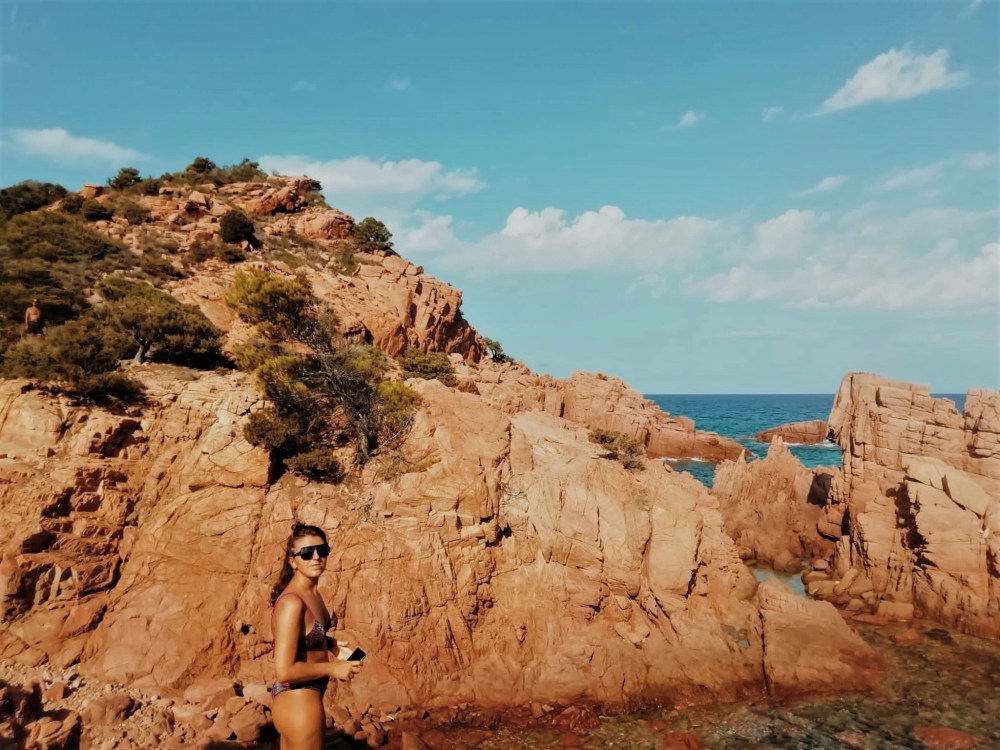 Qui l’acqua turchese si fonde con un colore verde smeraldo: il cambio repentino delle sfumature è dettato dal clima e dai raggi solari che si fanno spazio tra le nuvole. Spingendosi più a sud del litorale, il bianco dei ciottoli levigati dall’acqua marina lascia spazio al rosso che caratterizza le rocce in porfido di Arbatax e dei paesi circostanti.
