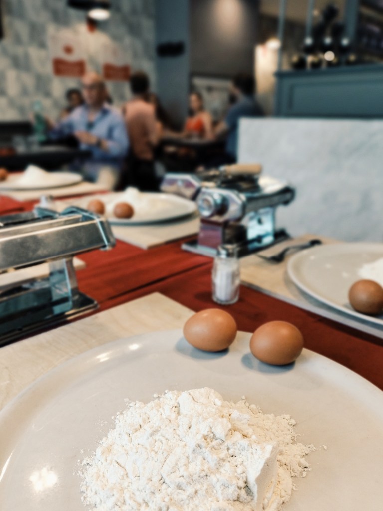 Qualche chiacchiera per rompere il ghiaccio, un aperitivo a base di spritz, bruschette, chips cacio e pepe e siamo carichi per metterci in gioco con la Pasta, ravioli & tiramisù class. Accomunati dall’euforia di preparare qualcosa insieme e di conoscere più da vicino i valori della cucina, seguiamo lo Chef Vincenzo che spiega quello che andremo a fare passo per passo e ci rivela chicche culinarie inaspettate.