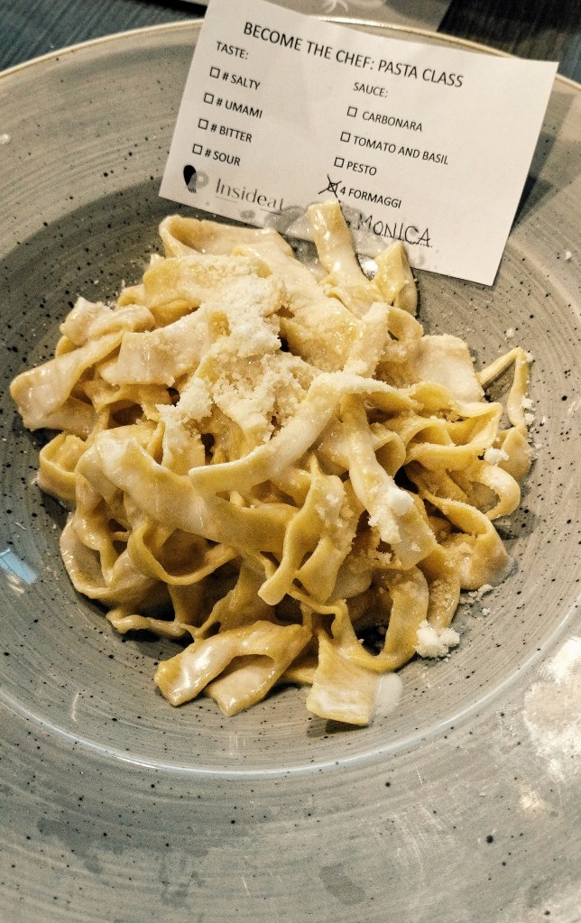 Dopo aver messo le mani in pasta è giunto il momento di godersi il frutto del proprio lavoro. Un brindisi apre le danze e, in men che non si dica, ci ritroviamo davanti ai piatti che abbiamo realizzato pochi minuti prima. Le mie fettuccine ai quattro formaggi e i ravioli di ricotta e spinaci al sugo rallegrano il mio palato. Quando arriva il turno del tiramisù ognuno prende la propria tazza, contraddistinta dalla decorazione personalizzata che le è stata data, e affonda il cucchiaio in quella che si rivela una dolce esplosione di bontà.