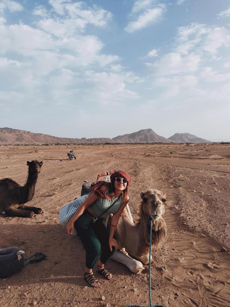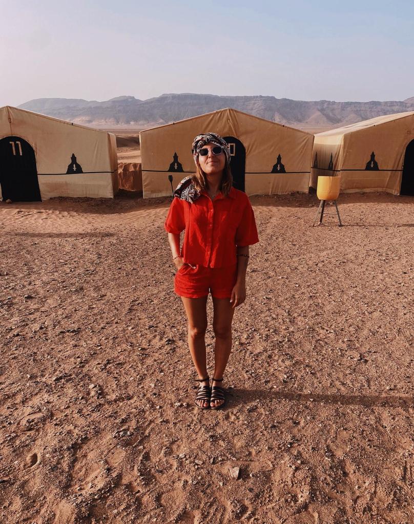 Il momento del viaggio che preferisco si palesa quando i miei amici ed io ci dirigiamo verso il deserto di Zagora. Meno battuto rispetto Merzouga (altra località marocchina dove protagoniste sono le dune di sabbia), questa zona del Sahara ha la particolarità di essere rocciosa. Se ho fatto bene i conti, è la quarta volta che mi ritrovo in un campo tendato nel deserto e ogni volta le emozioni sono sconfinate e acute. L’aridità è affascinante e il silenzio assordante, i movimenti sono lenti, le distrazioni sono assenti. Ascolto l’immensa quiete intorno a me, mentre sono lì in mezzo al nulla che in quel momento sembra tutto.